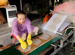 Sản xuất bánh đa mè tại hộ bà Trịnh Thị Bích Thuận. Sản phẩm đã được công nhận OCOP 3 sao.