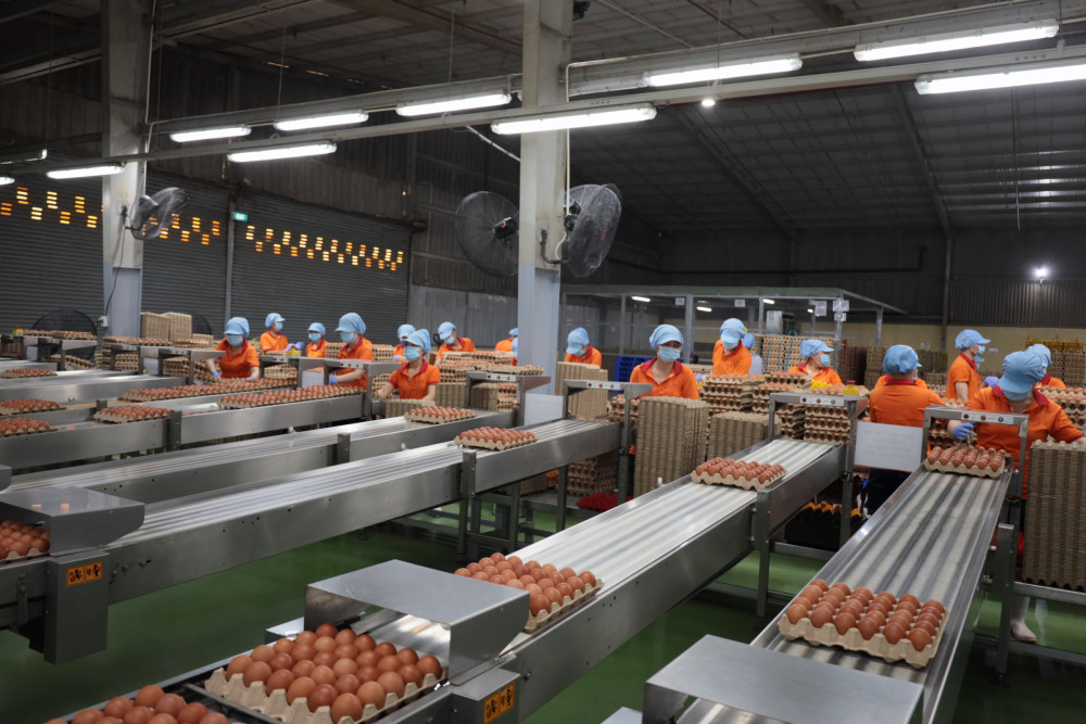 Công nhân sơ chế trứng gà tại một doanh nghiệp trên địa bàn tỉnh