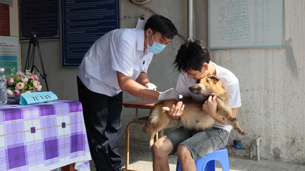 Cán bộ thú ý tiêm phòng bệnh dại cho vật nuôi