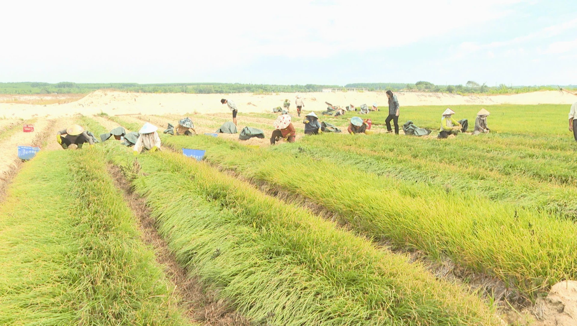 Những ngày này, trên những thửa ruộng trồng kiệu vùng đất cát ven biển Sơn Mỹ, nông dân đang tất bật thu hoạch đợt cuối của mùa kiệu. Hương kiệu thoảng bay trong gió, không khí vui tươi, nhộn nhịp và sự phấn khởi của bà con khi vụ kiệu phục vụ thị trường mùa tết “được mùa, được giá”. Giữa chiều muộn, khi ánh nắng dịu dần cũng là lúc hàng trăm người hối hả đóng kiệu vào bao cân ký, bốc lên xe để chở đi cung cấp cho các tỉnh, thành, nhất là ở chợ đầu mối Bình Điền - TP Hồ Chí Minh.