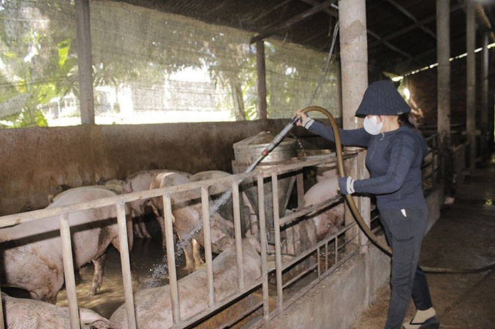 Ông Nguyễn Công Tài (xã Hòa Hưng, huyện Xuyên Mộc) đang nuôi 10 con heo nái và khoảng 40 con heo thịt. Thời điểm này, ông Tài đã tăng việc khử khuẩn chuồng trại lên 1 tuần/1 lần thay vì 2 tuần/1 lần như cách đây 2 tháng. Ông Tài cho biết: “Hiện đã bước vào mùa mưa, thời tiết ẩm, nguy cơ dịch bệnh cao nên công tác phòng dịch trên đàn heo cũng phải quan tâm hơn. Tôi tiêm đầy đủ các loại vắc xin phòng bệnh cho heo, còn chuồng trại thì sát trùng hàng tuần, hạn chế người ra vào chuồng”.
