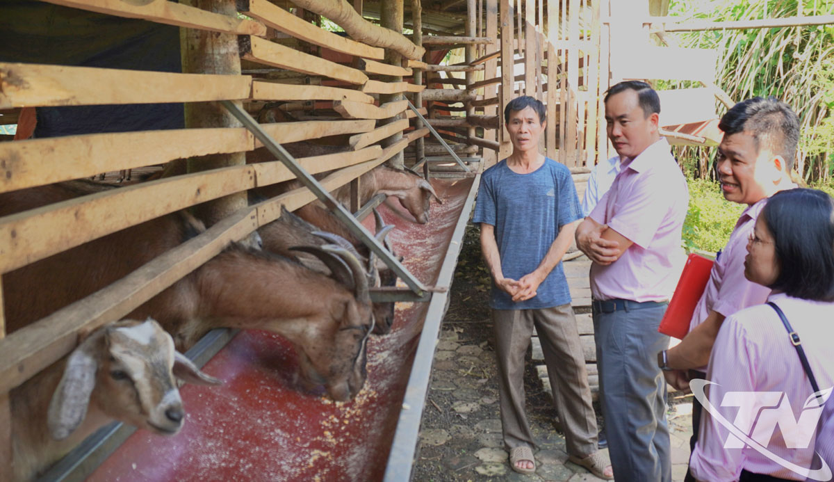 Đoàn công tác thăm mô hình nuôi dê tại phường Bắc Kạn. |