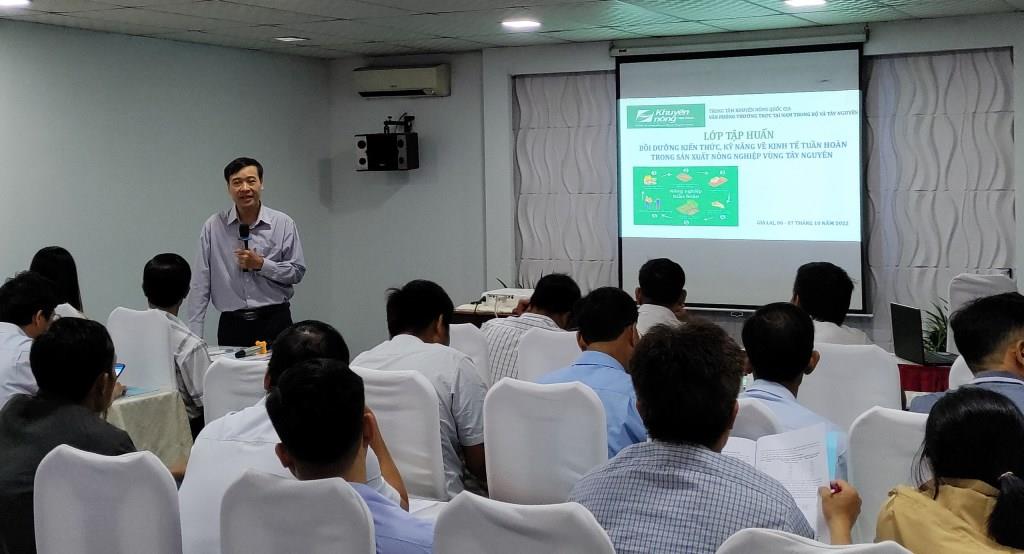 Với mục tiêu tăng cường nhận thức, hiểu biết cho học viên về kinh tế tuần hoàn, kinh tế tuần hoàn trong nông nghiệp trong giai đoạn hiện nay; áp dụng kinh tế tuần hoàn trong sản xuất nông nghiệp, tận dụng tối đa các phế phẩm nông nghiệp làm nguyên liệu đầu vào trong quá trình sản xuất nhằm đem lại hiệu quả kinh tế và bảo vệ môi trường sinh thái, Văn phòng thường trực tại NTB&TN - Trung tâm Khuyến nông Quốc gia tổ chức lớp tập huấn cho cán bộ khuyến nông, khuyến nông viên và nông dân tiêu biểu của các tỉnh Đắk Lắk, Đắk Nông, Gia Lai và Kon Tum.