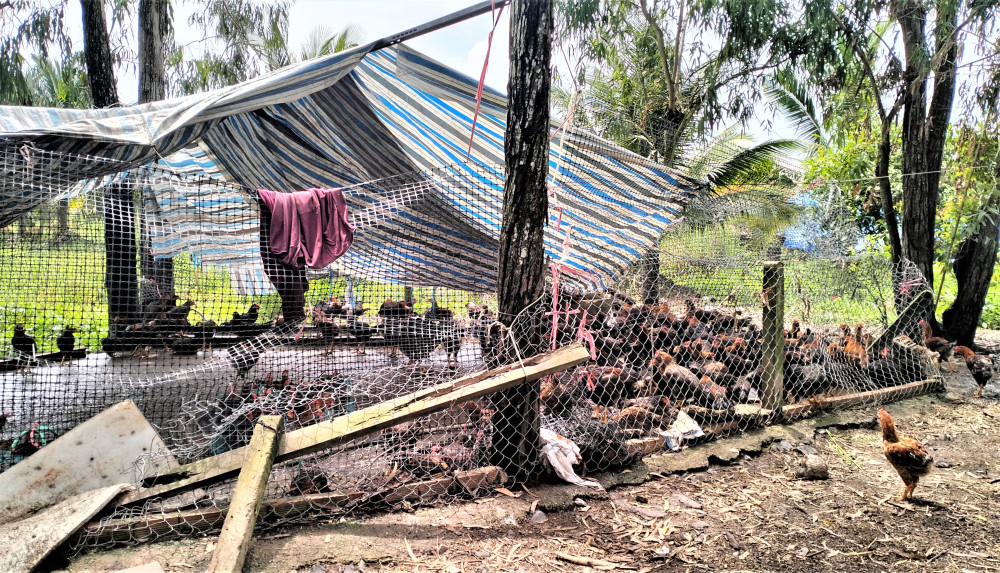 Khu chuồng trại nuôi nhốt gia cầm được dựng tạm bợ