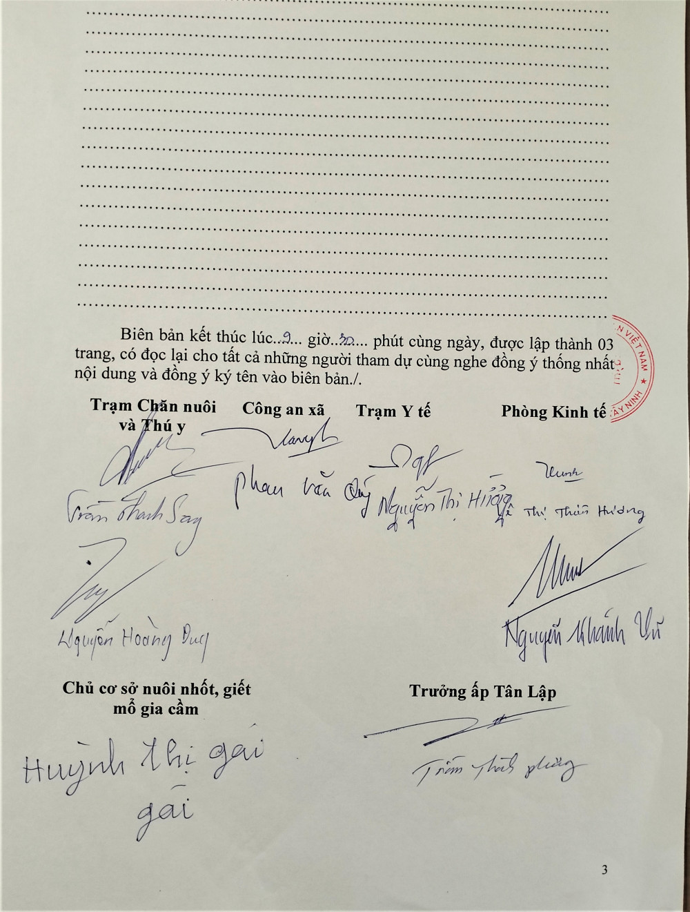 Biên bản kiểm tra của Phòng Kinh tế xã Bến Cầu