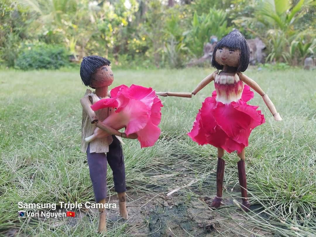 “Vốn là người rất thích nghệ thuật và các sản phẩm liên quan đến mỹ thuật và do 1 phần trong mình hay xuất hiện các ý tưởng bất chợt nên lúc nào nảy sinh ý tưởng là cứ thực hiện. Làm xong là cầm lấy điện thoại chụp rồi khoe lên Facebook. Mình tạo hình con này con kia và lượm những thứ dường như bỏ đi trong vườn từ khúc cây, trái cau khô để tạo hình nhân vật chị đẹp và trai quê, hay Vợ chồng Thơm – Thúi du hí, Con gà nhiều chuyện… để dựng nên những mẫu chuyện vui, ý nghĩa cho mọi người đọc, mục đích là mang tiếng cười đến cho nhiều người”, anh Von Nguyễn kể.