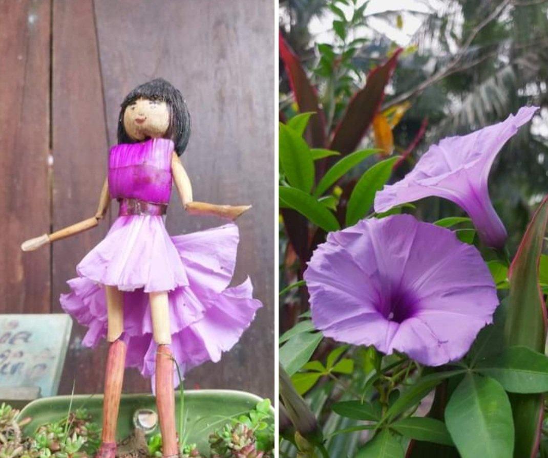 Bên cạnh đó, anh Von Nguyễn cho biết khi nhìn thành quả của nhiều người làm vườn, anh thật ngưỡng mộ, còn bản thân thì chưa có kinh nghiệm gì và xung quanh nhà chỉ toàn là cây quen thuộc thì anh cứ nghĩ phải làm gì đó để góp vui với mọi người, nên anh hay nổi hứng sáng tạo từ những thứ quen thuộc xung quanh nhà như các loài hoa, cỏ, ....