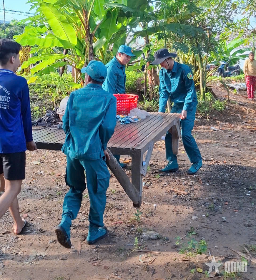 | Lực lượng dân quân hỗ trợ người dân di dời tài sản. |