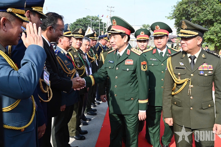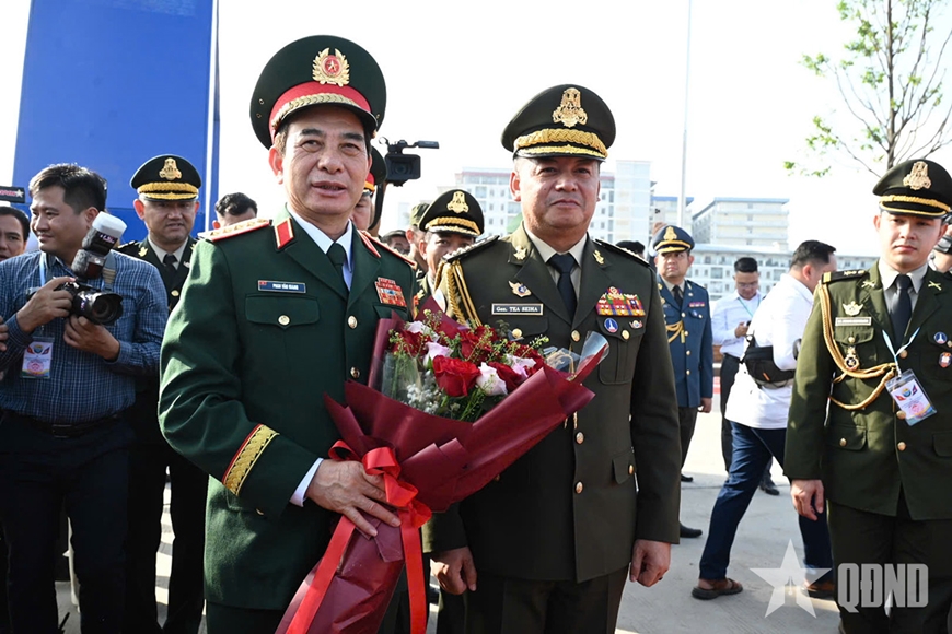 Đoàn Việt Nam do Đại tướng Phan Văn Giang, Ủy viên Bộ Chính trị, Phó bí thư Quân ủy Trung ương, Bộ trưởng Bộ Quốc phòng dẫn đầu. Lễ đón được tiến hành trang trọng dưới sự chủ trì của Đại tướng Tea Seiha, Phó thủ tướng, Bộ trưởng Bộ Quốc phòng Campuchia.