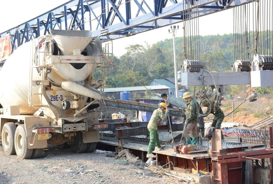 | Các đơn vị thi công tranh thủ thời tiết mùa khô, đẩy nhanh tiến độ. |
