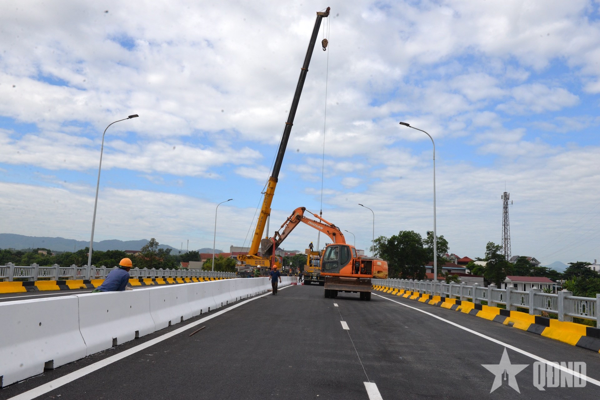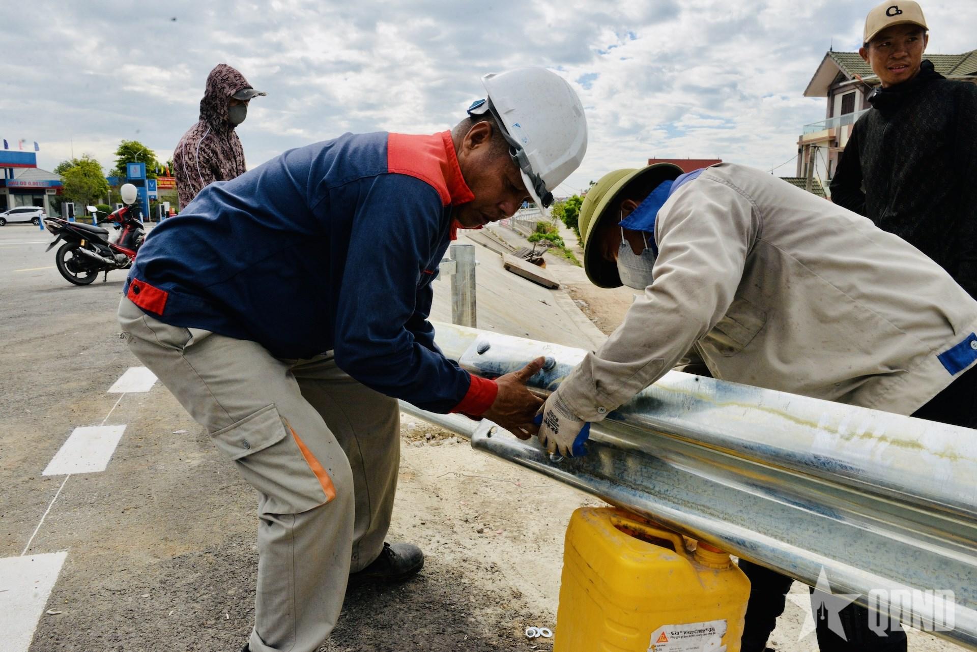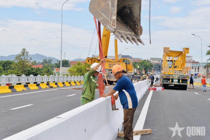 | Các lực lượng đang căn chỉnh dải phân cách. |