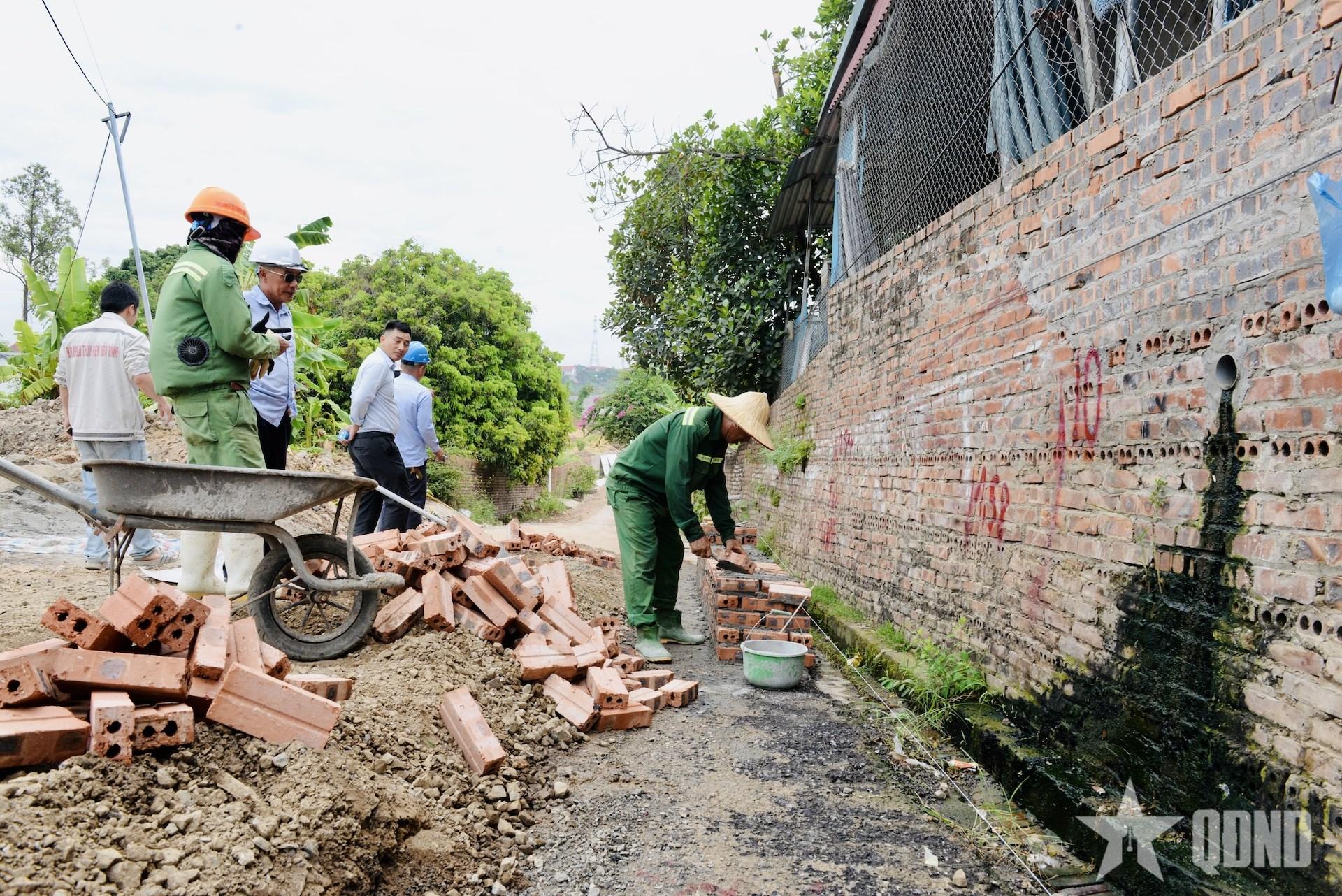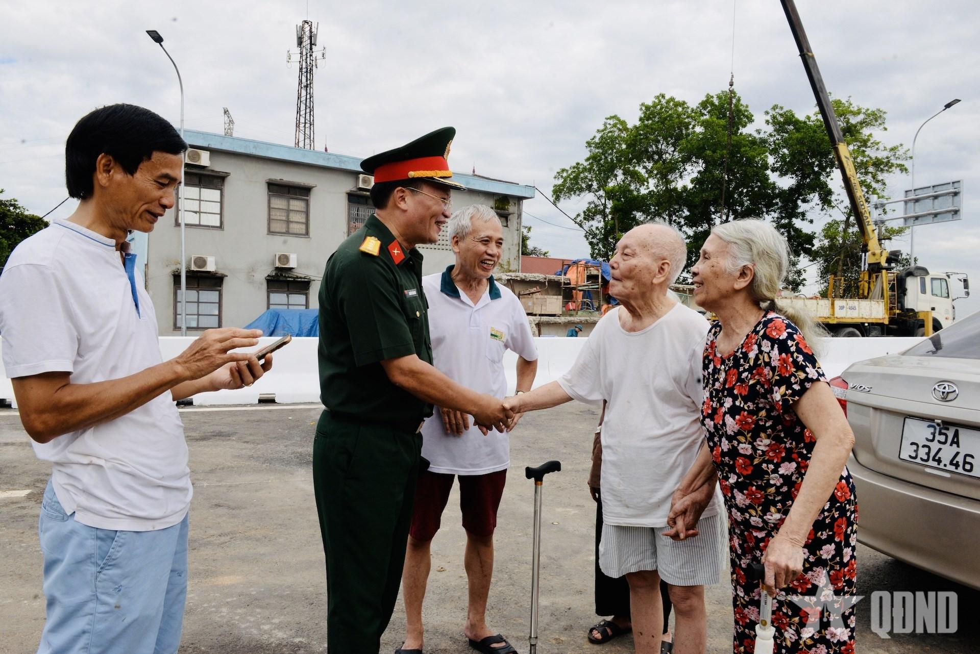 | Người dân xúc động trước những nỗ lực, cố gắng của Bộ đội Cụ Hồ trên công trường dự án cầu Phong Châu mới. |