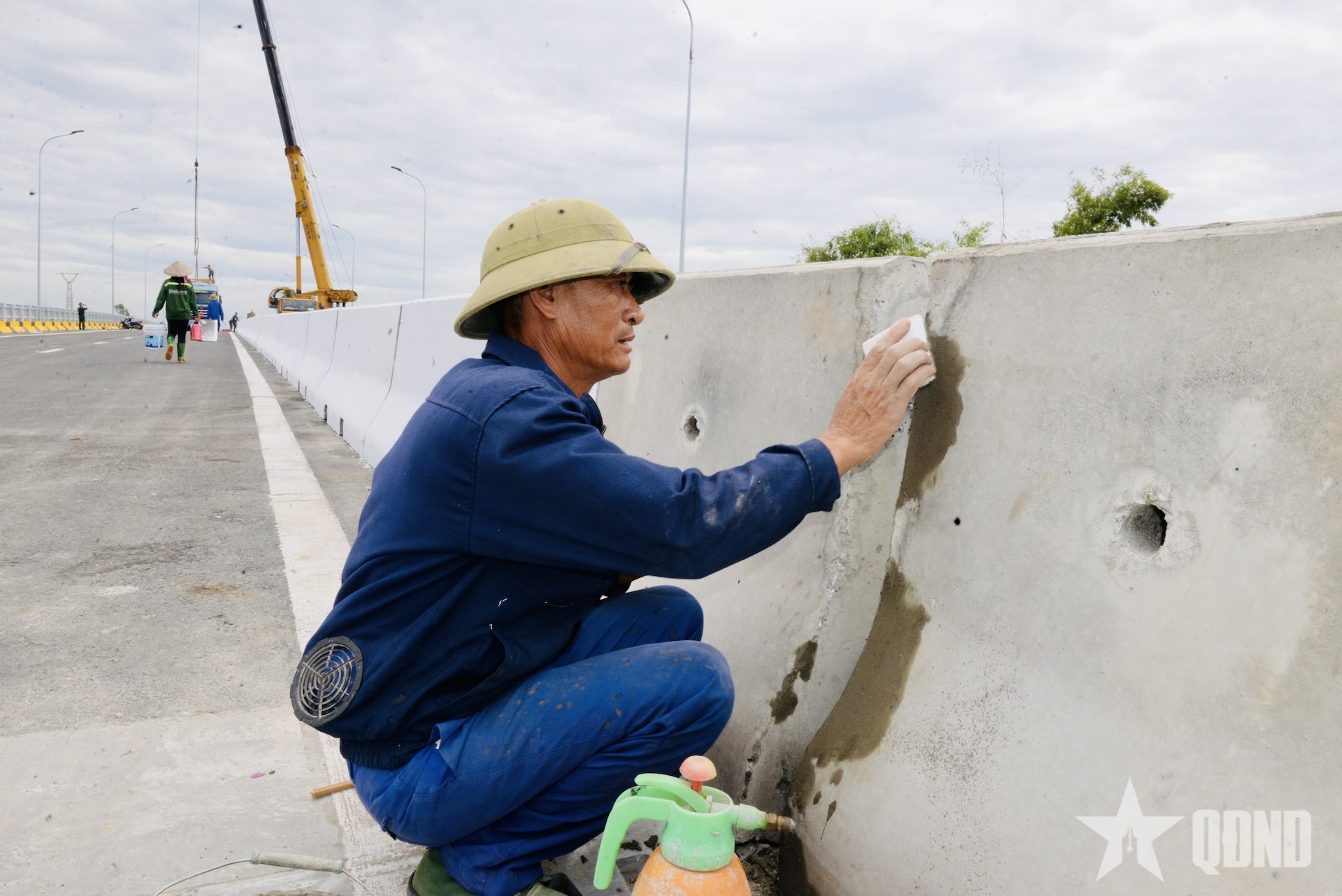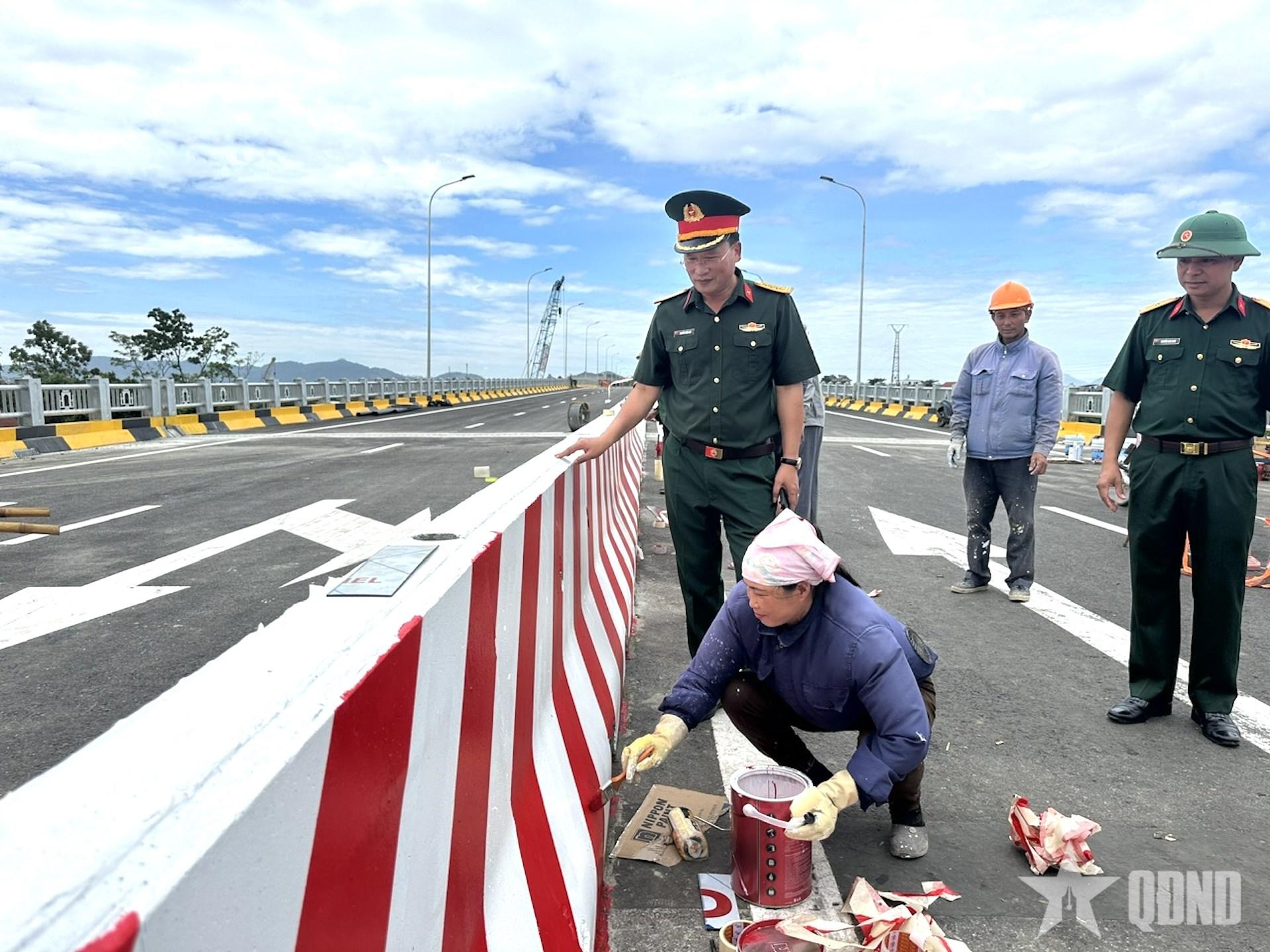 | Đại tá Nguyễn Tuấn Anh, Phó tư lệnh Binh đoàn 12, Phó tổng giám đốc Tổng công ty Xây dựng Trường Sơn kiểm tra các công đoạn cuối cùng để chuẩn bị cho ngày khánh thành, thông xe cầu Phong Châu. |