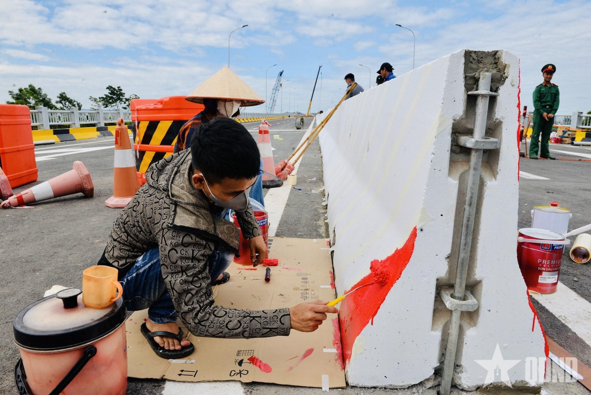 | Công nhân đang sơn chỉnh dải phân cách. |