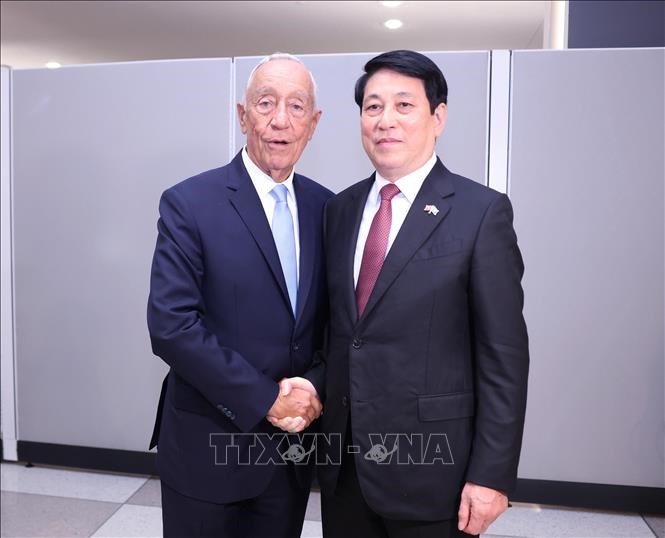 | Chủ tịch nước Lương Cường gặp Tổng thống Bồ Đào Nha Marcelo Rebelo de Sousa. Ảnh: TTXVN |