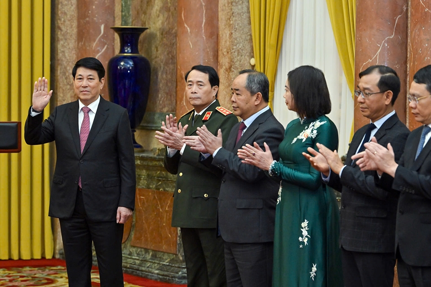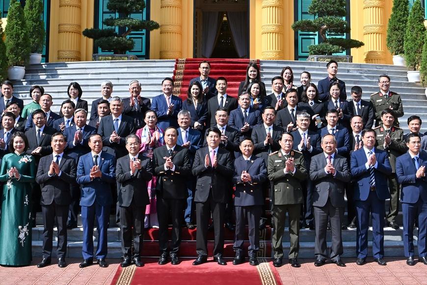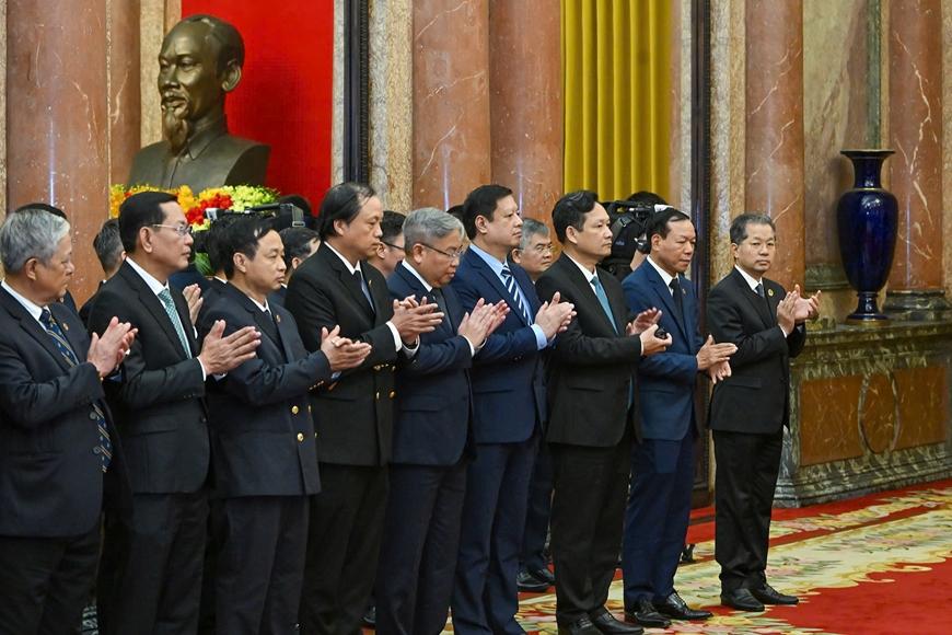 Chủ tịch nước Lương Cường và các đại biểu cùng các đồng chí được bổ nhiệm. |