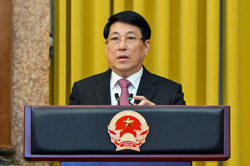 | Chủ tịch nước Lương Cường phát biểu tại buổi lễ. |