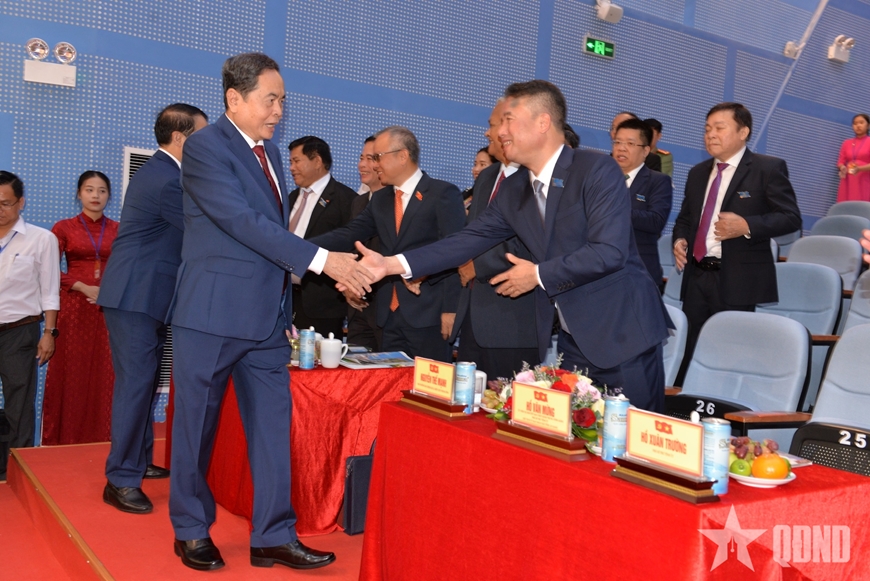 | Chủ tịch Quốc hội Trần Thanh Mẫn cùng các đại biểu tham dự đại hội. |