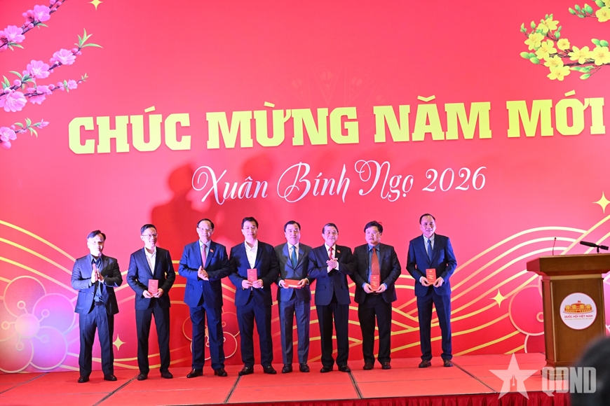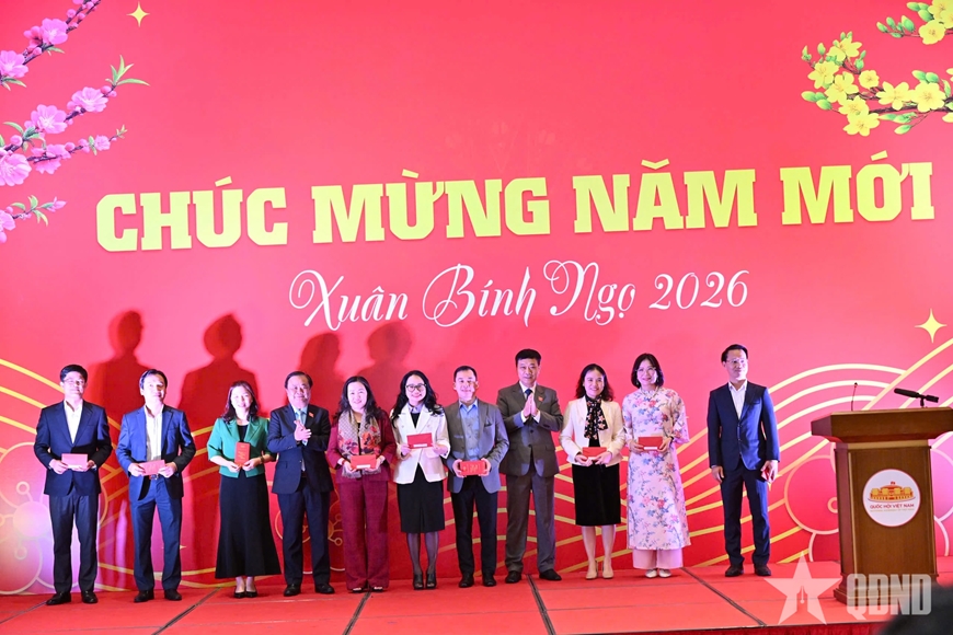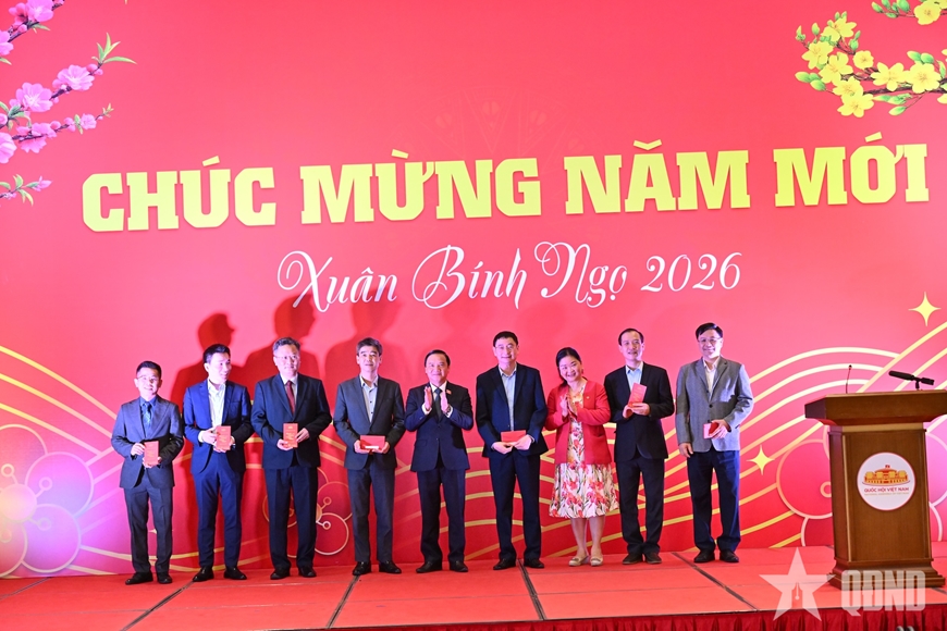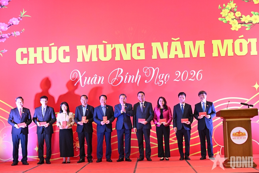 Trước đó, báo cáo tại cuộc gặp mặt, Tổng Thư ký Quốc hội, Chủ nhiệm Văn phòng Quốc hội Lê Quang Mạnh cho biết, Tết Nguyên đán Bính Ngọ 2026 diễn ra trong không khí đầm ấm, vui tươi, lành mạnh, an toàn, tiết kiệm; nhân dân phấn khởi về thành công của Đại hội XIV của Đảng.