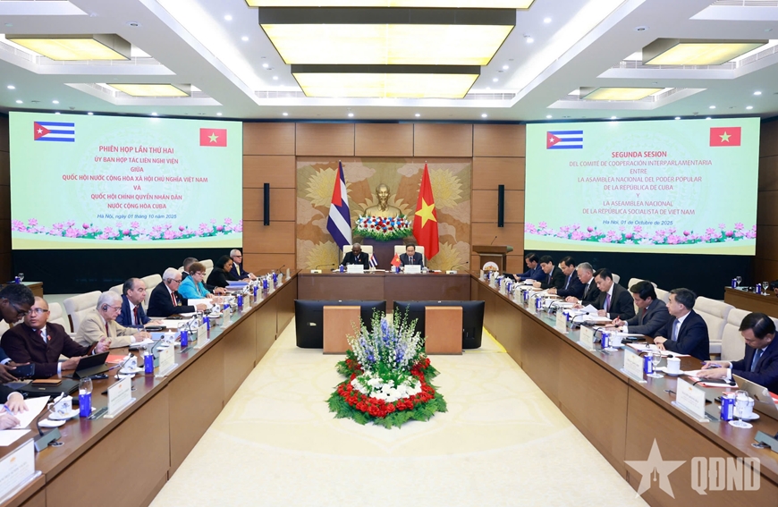 Sáng 1-10, tại Nhà Quốc hội, Chủ tịch Quốc hội Trần Thanh Mẫn và Chủ tịch Quốc hội Cuba Esteban Lazo Hernández đồng chủ trì Phiên họp thứ hai của Ủy ban hợp tác liên nghị viện Việt Nam-Cuba.