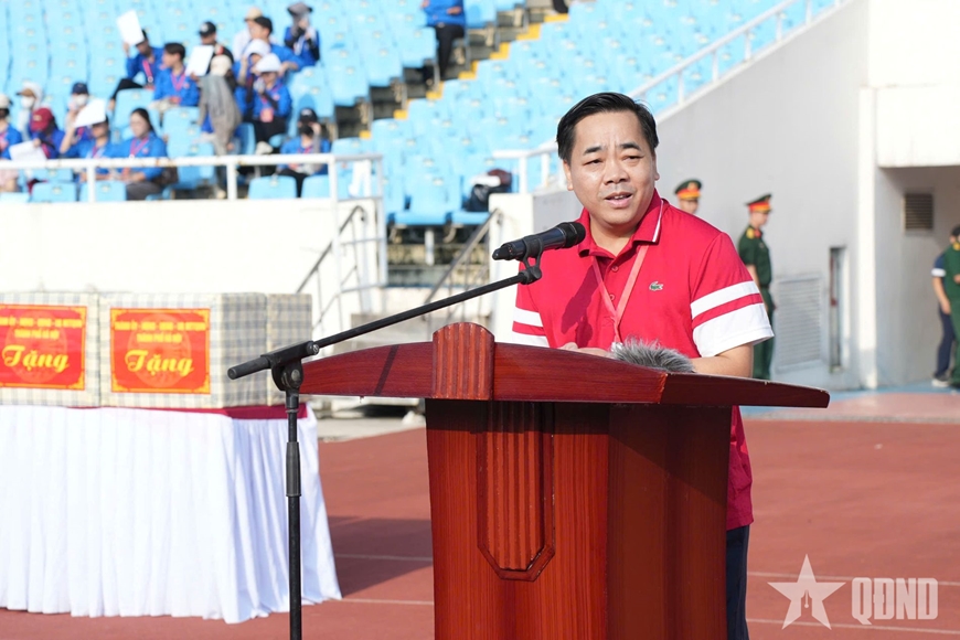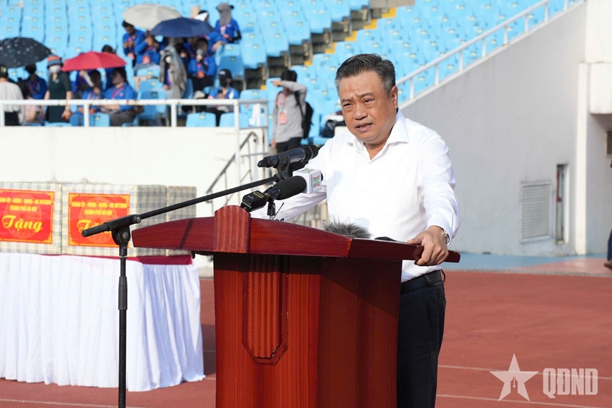 Chủ tịch UBND TP Hà Nội Trần Sỹ Thanh phát biểu động viên các khối tham gia diễu binh, diễu hành A80. |