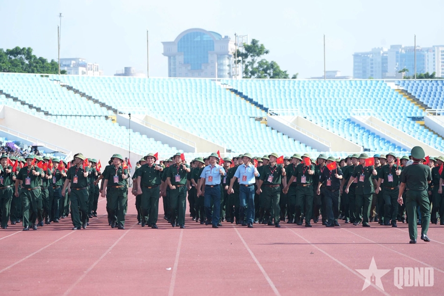 | Các khối bước vào chương trình tập luyện, hợp luyện diễu binh, diễu hành A80. |