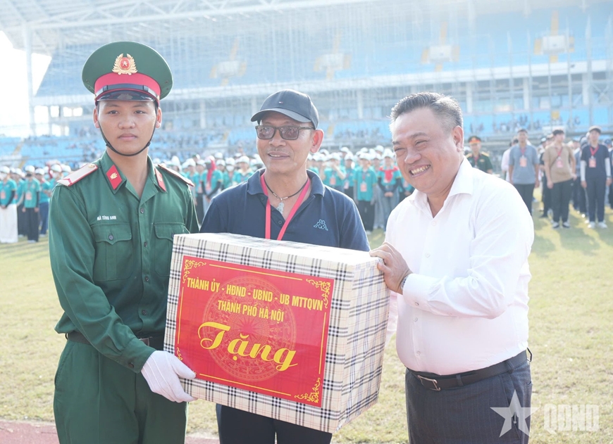 Nhân dịp này, đồng chí Trần Sỹ Thanh thay mặt Thành ủy, HĐND, UBND, Ủy ban MTTQ Việt Nam thành phố cùng các cơ quan của thành phố Hà Nội tặng những món quà động viên các khối diễu binh, diễu hành để mọi người hoàn thành tốt nhiệm vụ.