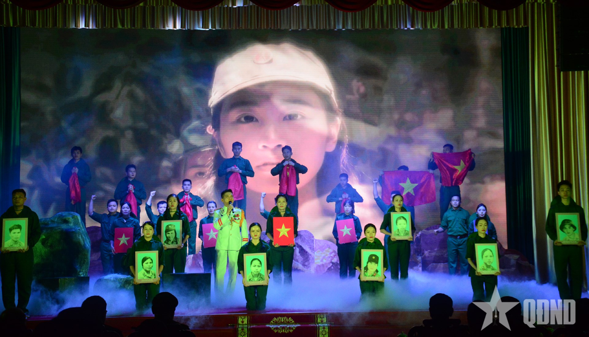 | Một tiết mục nghệ thuật tái hiện sự hy sinh anh dũng của các nữ chiến sĩ thông tin. |