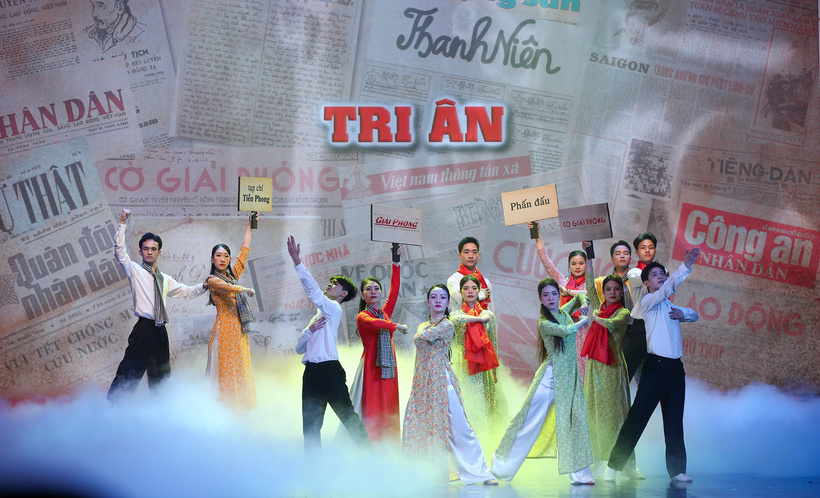 Chương trình nghệ thuật như một bản hùng ca tái hiện lịch sử một thế kỷ của nền Báo chí Cách mạng Việt Nam. Ảnh: Nam Nguyễn