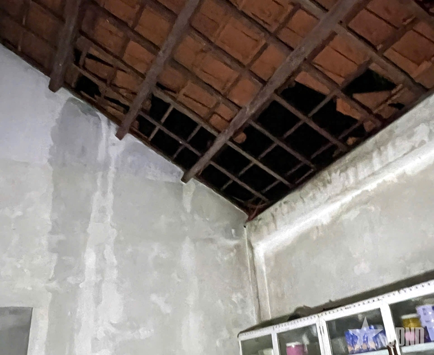 Trận lốc xoáy làm hư hỏng nhiều ngôi nhà của người dân xã Chiên Đàn (TP Đà Nẵng) tối 16-11. |