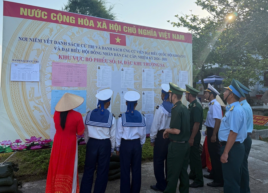 Cử tri đảo Trường Sa xem danh sách niêm yết cử tri.