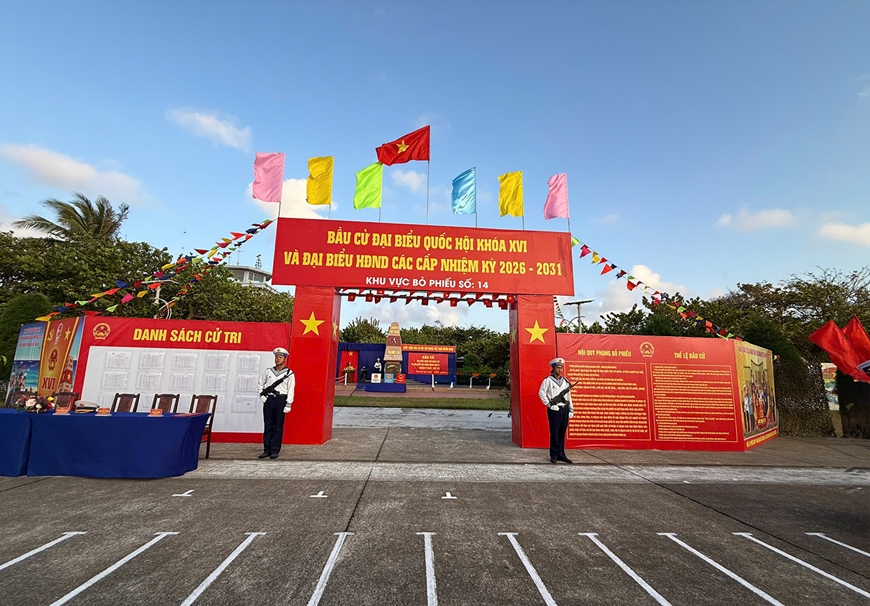 Sáng 14-3, Khu vực bỏ phiếu số 14 (đảo Trường Sa, đặc khu Trường Sa) tổ chức tổng duyệt công tác chuẩn bị phục vụ cuộc bầu cử đại biểu Quốc hội khóa XVI và đại biểu HĐND các cấp nhiệm kỳ 2026-2031. Khu vực bỏ phiếu số 14 sẽ tổ chức bầu cử cùng ngày với cả nước 15-3.