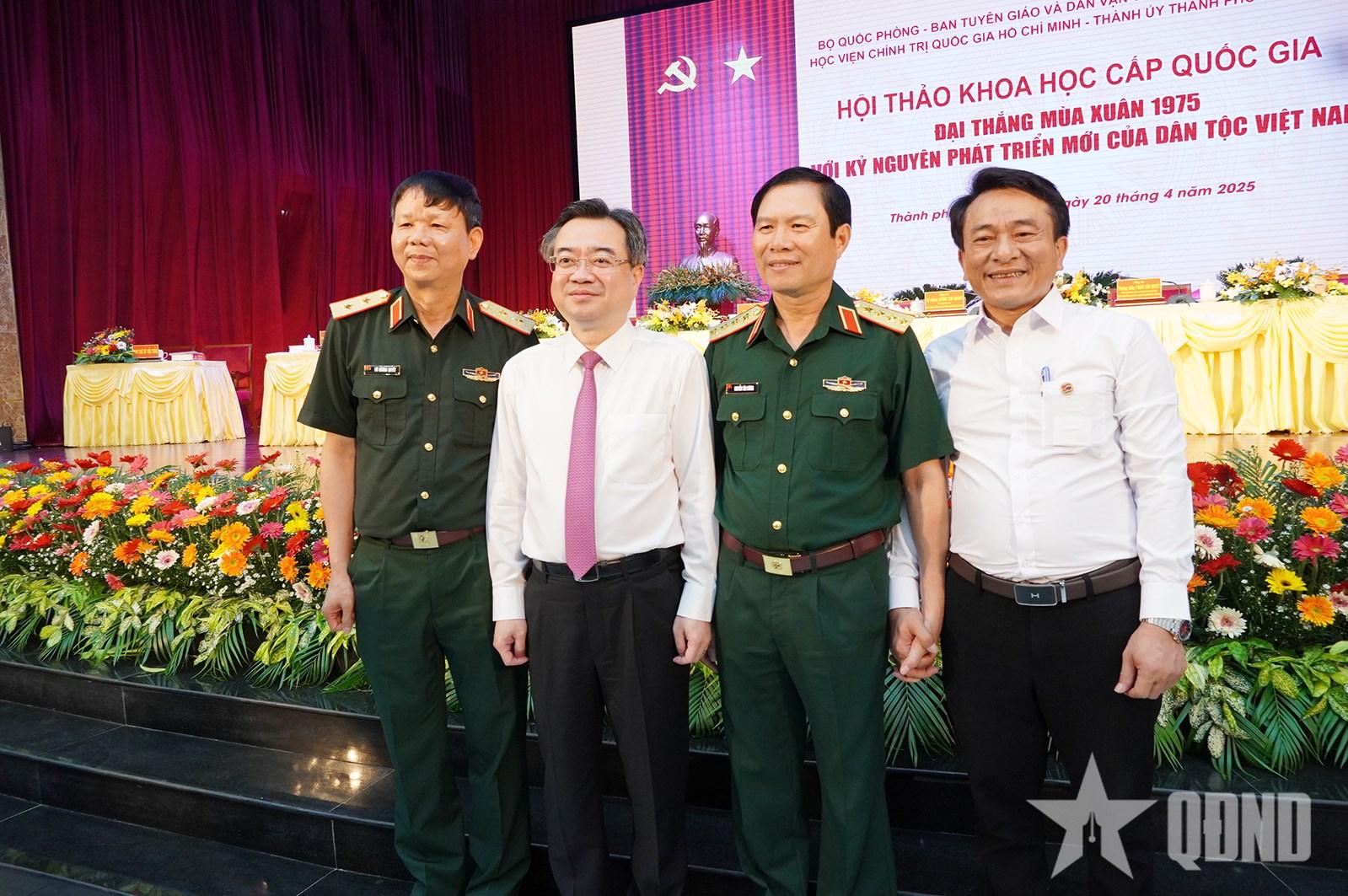 Để tiếp tục khẳng định giá trị lịch sử, chiến công oanh liệt, tầm vóc thời đại và làm rõ bài học kinh nghiệm của Đại thắng mùa Xuân 1975, phát biểu khai mạc hội thảo, Đại tướng Phan Văn Giang, Ủy viên Bộ Chính trị, Phó bí thư Quân ủy Trung ương, Bộ trưởng Bộ Quốc phòng nêu rõ: “Hội thảo khoa học hôm nay là sự kiện quan trọng trong chuỗi hoạt động kỷ niệm 50 năm Giải phóng miền Nam, thống nhất đất nước (30-4-1975 / 30-4-2025). Kết quả của cuộc hội thảo sẽ góp phần hun đúc tinh thần yêu nước, lòng tự hào, tự tôn dân tộc; củng cố niềm tin và quyết tâm chính trị của toàn Đảng, toàn dân và toàn quân thực hiện thắng lợi Nghị quyết Đại hội XIII của Đảng; đồng thời, đấu tranh với các quan điểm sai trái, phủ nhận cuộc kháng chiến trường kỳ của dân tộc, sự nghiệp cách mạng vĩ đại của nhân dân ta”.
