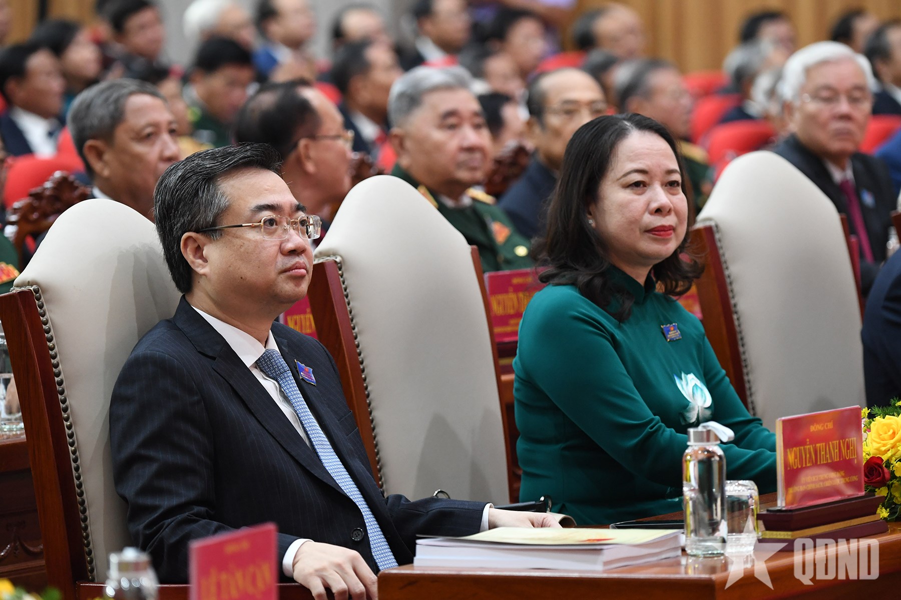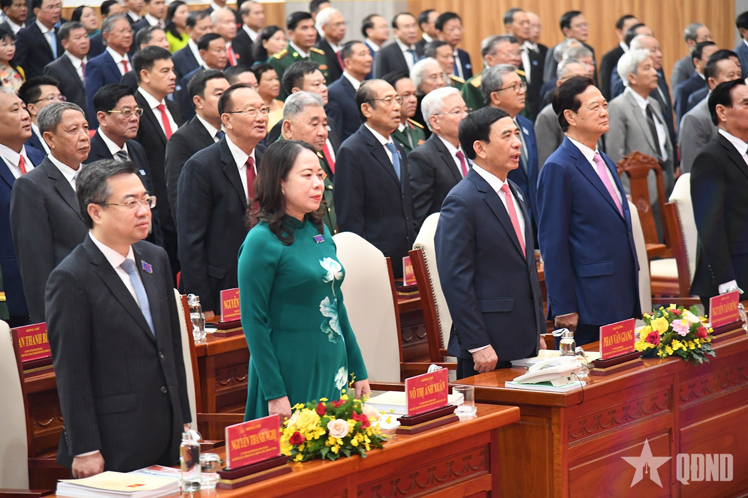 | Đại tướng Phan Văn Giang, Ủy viên Bộ Chính trị, Phó bí thư Quân ủy Trung ương, Bộ trưởng Bộ Quốc phòng và các đại biểu dự Đại hội. |