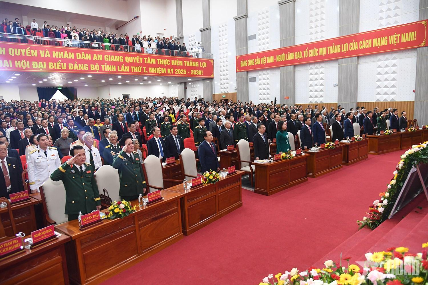 Sáng 3-10, tại Trung tâm Văn hóa- Nghệ thuật tỉnh An Giang đã diễn ra sự kiện chính trị quan trọng nhất trong năm, được đông đảo cán bộ, đảng viên và quần chúng nhân dân quan tâm. Đó là Đại hội đại biểu Đảng bộ tỉnh An Giang lần thứ I, nhiệm kỳ 2025-2030. Đại tướng Phan Văn Giang, Ủy viên Bộ Chính trị, Phó bí thư Quân ủy Trung ương, Bộ trưởng Bộ Quốc phòng đến dự và phát biểu chỉ đạo Đại hội.