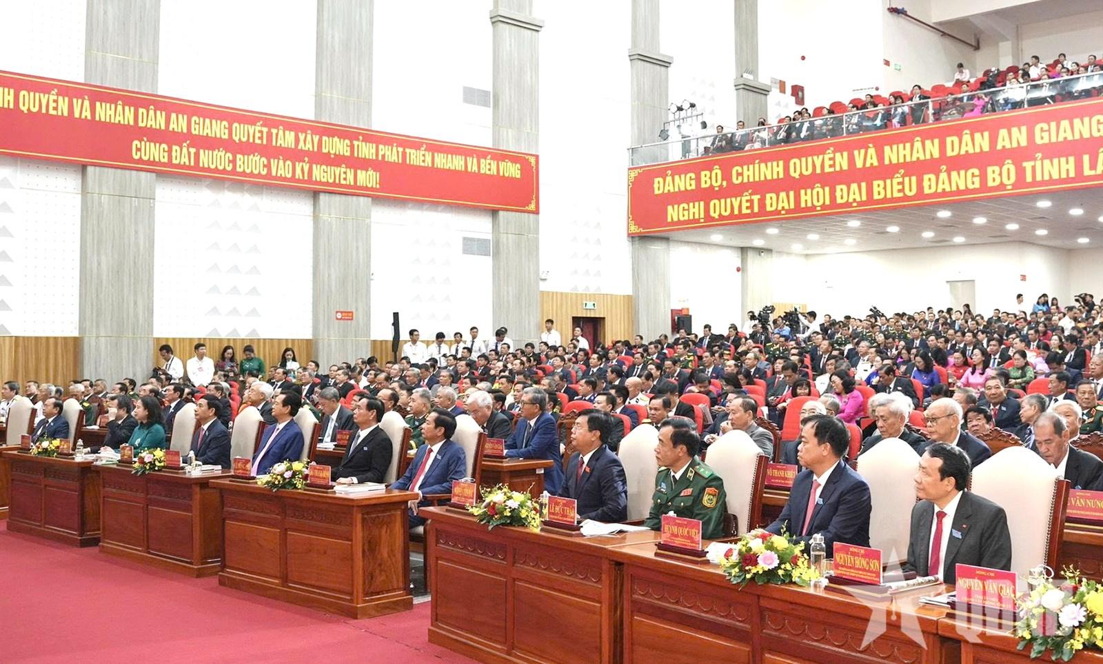 Dự Đại hội có các đồng chí: Nguyễn Tấn Dũng, nguyên Ủy viên Bộ Chính trị, nguyên Thủ tướng Chính phủ; Đại tướng Lê Hồng Anh, nguyên Ủy viên Bộ Chính trị, nguyên Thường trực Ban Bí thư; Võ Thị Ánh Xuân, Ủy viên Trung ương Đảng, Phó chủ tịch nước; Nguyễn Thanh Nghị, Ủy viên Trung ương Đảng, Trưởng ban Chính sách, Chiến lược Trung ương; Lê Hồng Quang, Ủy viên Trung ương Đảng, Phó trưởng ban Nội chính Trung ương; Đỗ Thanh Bình, Ủy viên Trung ương Đảng, Phó trưởng Ban Tổ chức Trung ương, Thứ trưởng thường trực Bộ Nội vụ; các Ủy viên Trung ương Đảng; lãnh đạo các ban, bộ, ngành Trung ương; lãnh đạo Quân khu 9; Bộ tư lệnh Bộ đội Biên phòng; Tư lệnh Binh đoàn 20; Bộ tư lệnh Vùng 5 Hải quân; Bộ tư lệnh Vùng Cảnh sát biển 4; các đồng chí nguyên lãnh đạo tỉnh An Giang; các Bà mẹ Việt Nam Anh hùng; Anh hùng LLVT nhân dân cùng 448 đại biểu chính thức, đại diện cho hơn 131.000 đảng viên trong toàn Đảng bộ tỉnh.