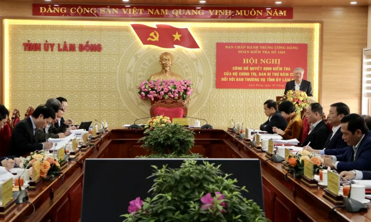 Tại buổi làm việc, Ủy viên Ủy ban Kiểm tra Trung ương Nguyễn Văn Hội - đại diện đoàn kiểm tra - đã công bố Quyết định số 1923-QĐNS/TW ngày 14/2/2025 của Bộ Chính trị về thành lập Đoàn kiểm tra của Bộ Chính trị, Ban Bí thư năm 2025 đối với Ban Thường vụ một số địa phương, trong đó có tỉnh Lâm Đồng. Theo Quyết định số 1923, Đoàn tiến hành kiểm tra về 4 nội dung, cụ thể là: