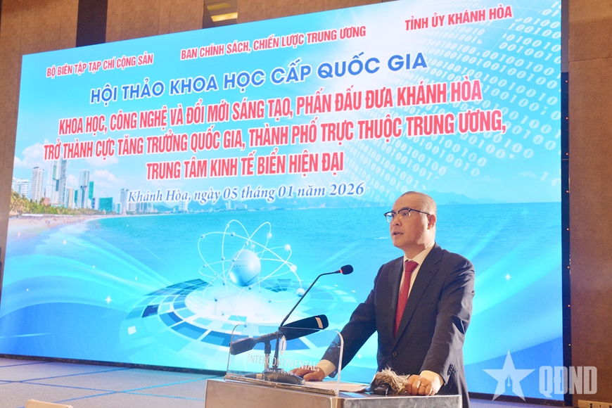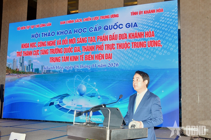 Sáng 5-1, tại Khánh Hòa, Ban Chính sách, chiến lược Trung ương, Bộ biên tập Tạp chí Cộng sản và Tỉnh ủy Khánh Hòa phối hợp tổ chức Hội thảo Khoa học cấp Quốc gia với chủ đề: Khoa học, công nghệ và đổi mới sáng tạo, phấn đấu đưa Khánh Hòa trở thành cực tăng trưởng quốc gia, thành phố trực thuộc Trung ương, trung tâm kinh tế biển hiện đại.