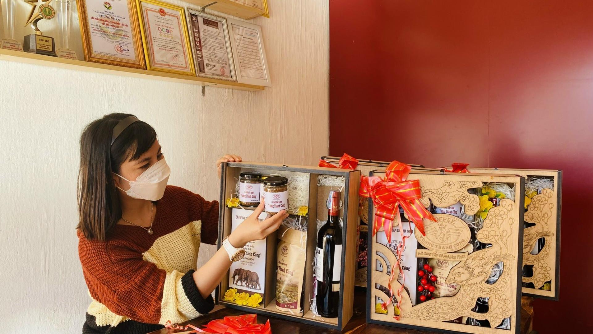 Lựa chọn phổ biến của người tiêu dùng hiện nay là sử dụng những sản phẩm sạch, an toàn cho sức khỏe để phục vụ nhu cầu thiết yếu và biếu bạn bè, đối tác, người thân. Nắm bắt được nhu cầu đó, các đơn vị, doanh nghiệp, hộ kinh doanh trên địa bàn đã thiết kế nhiều giỏ quà Tết đa dạng với những món quà là sản phẩm đặc trưng của địa phương, được chứng nhận OCOP (chương trình mỗi xã một sản phẩm), như: cà phê, rượu, mật ong, các loại hạt... Những sản phẩm trên được gói đẹp mắt, đóng giỏ hoặc hộp trang trọng, xứng tầm làm quà biếu.
