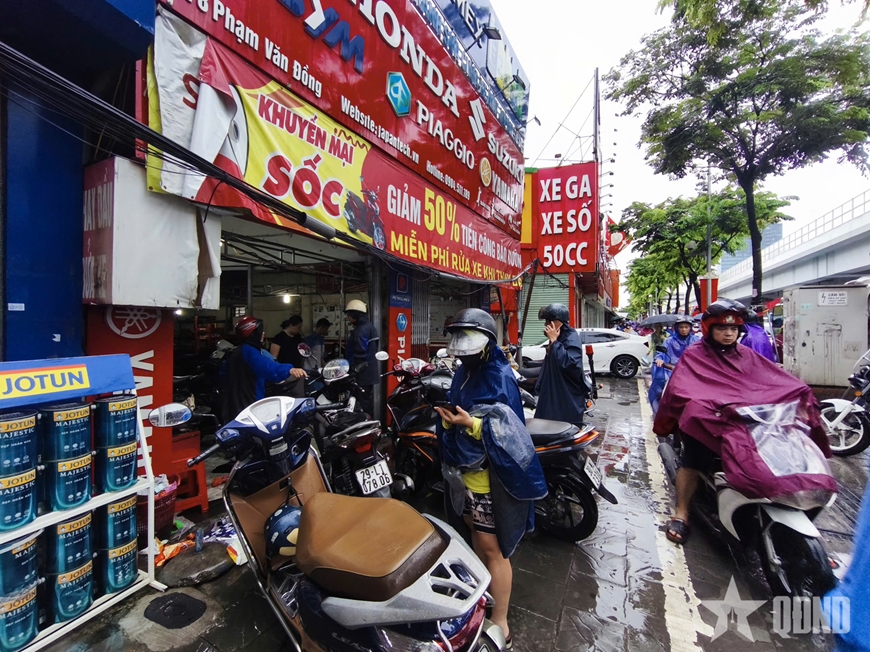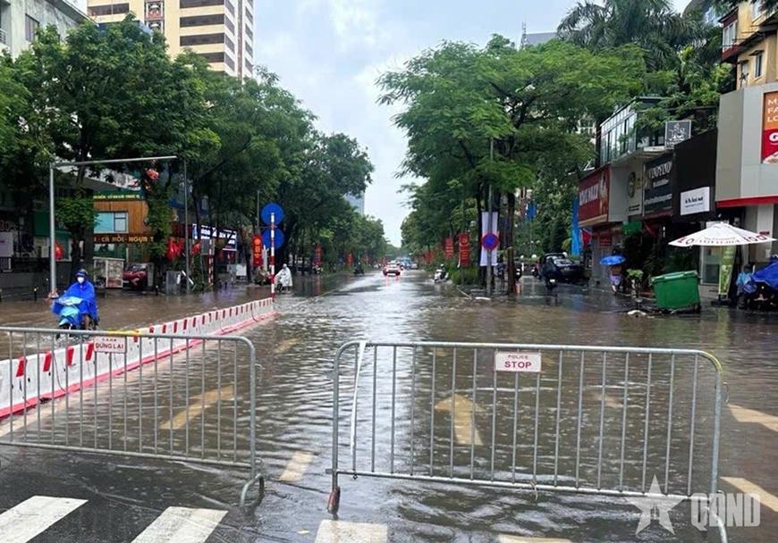 | Mưa ngập trên phố Nguyễn An Ninh. |
