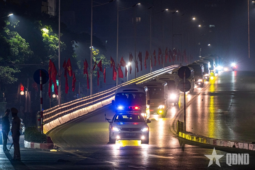 | Đoàn xe di chuyển từ Lăng Chủ tịch Hồ Chí Minh ra Đài tưởng niệm các Anh hùng liệt sĩ. |