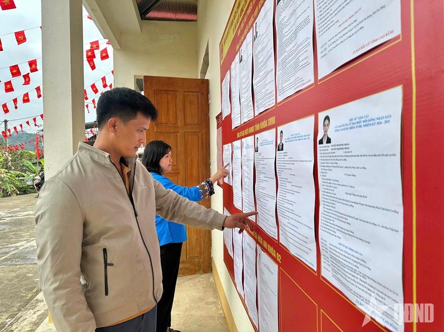 | Cử tri xem danh sách ứng cử viên đại biểu và các quy định về bầu cử. |