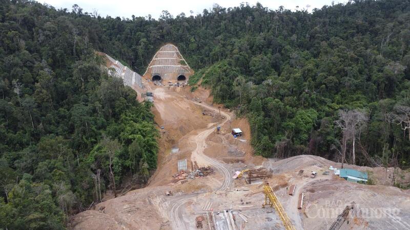 Thi công hầm ở đèo Phượng Hoàng (địa phận giáp ranh giữa Đắk Lắk và Khánh Hoà). Ảnh: Vũ Long