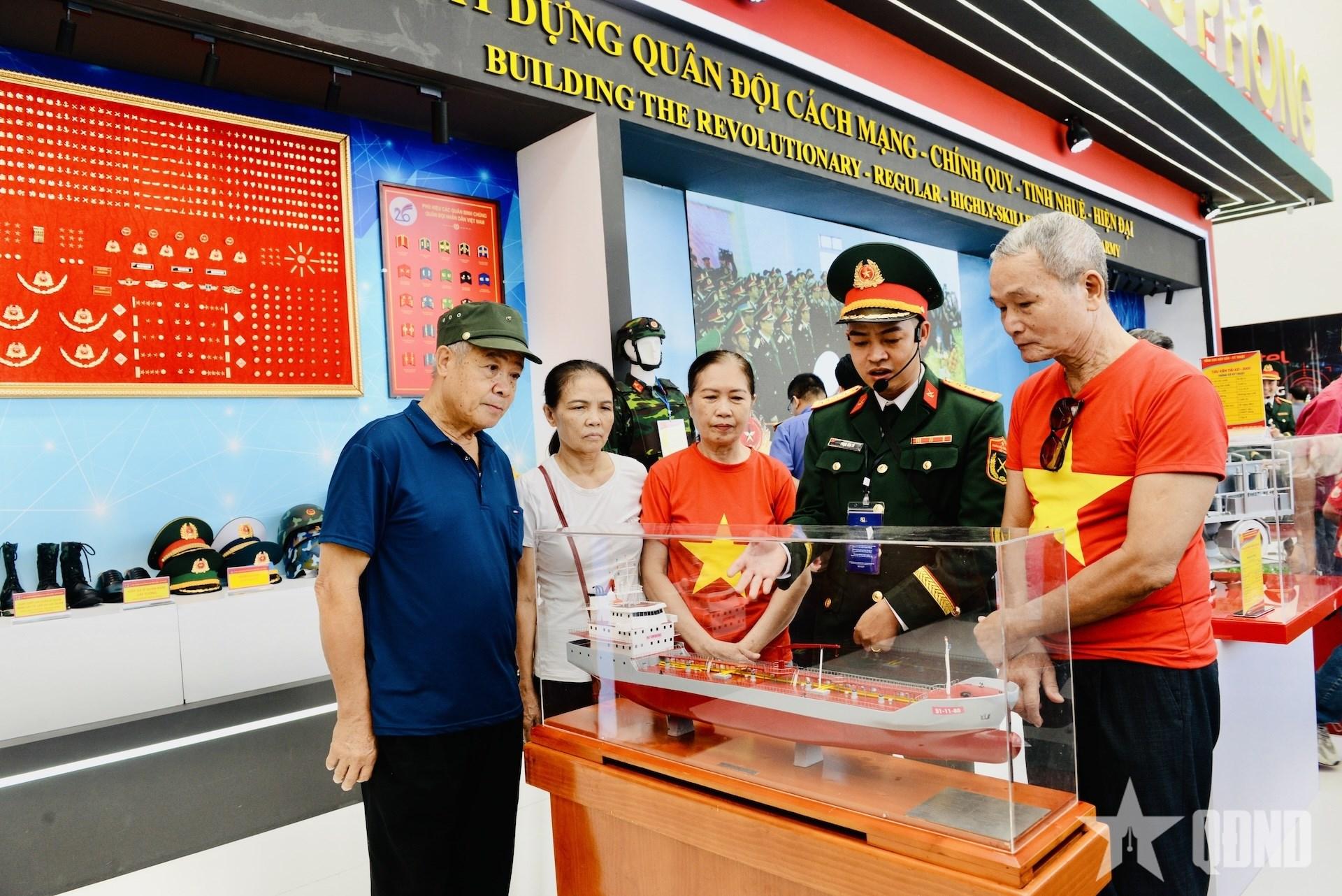 | Không gian triển lãm của Bộ Quốc phòng luôn là điểm dừng chân của người dân, du khách tham quan. |