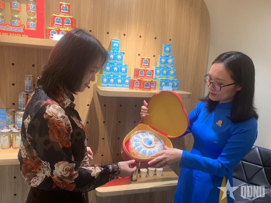 | Đại diện Công ty TNHH Nhà nước Một thành viên Yến sào Khánh Hòa giới thiệu các sản phẩm về yến. |