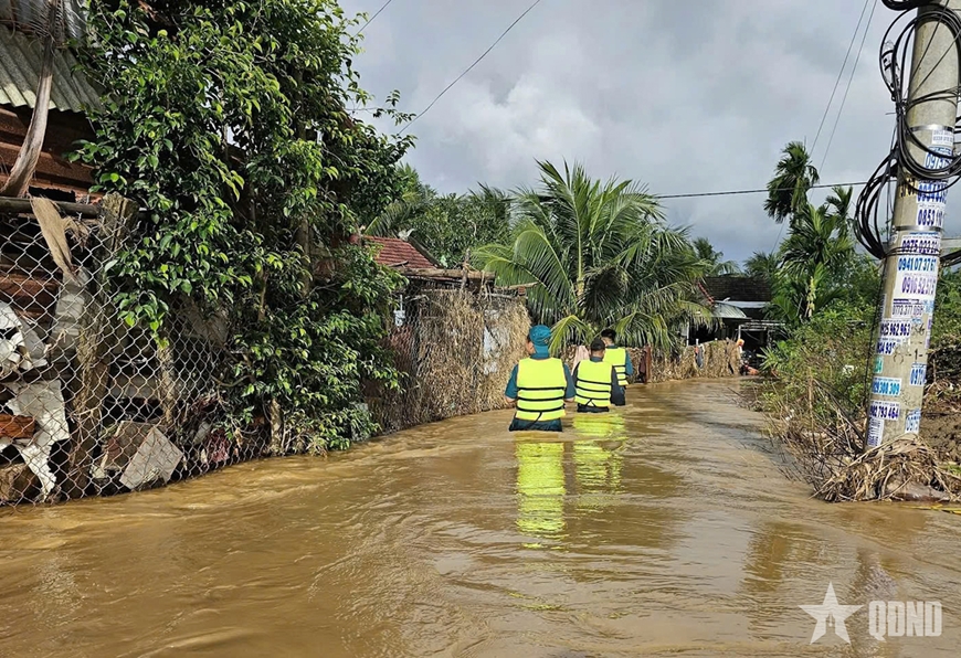| Các lực lượng chốt chặn khu vực có nguy cơ ngập lụt. |