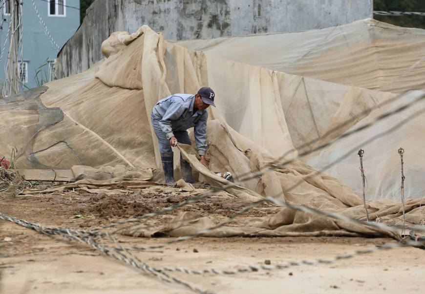 Đợt mưa lũ từ ngày 16 đến 22-11 khiến nhiều nhà lưới sản xuất nông nghiệp ở xã Ka Đô, tỉnh Lâm Đồng bị hư hỏng. Ảnh: Báo Nông nghiệp và Môi trường