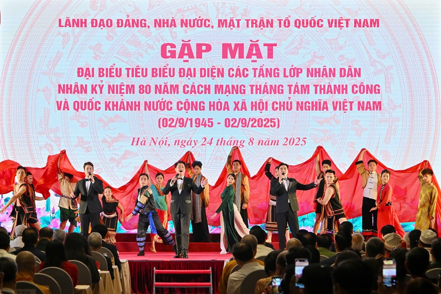 Sáng 24-8, tại Trung tâm Hội nghị Quốc tế (TP Hà Nội), Ủy ban Trung ương Mặt trận Tổ quốc Việt Nam tổ chức hội nghị lãnh đạo Đảng, Nhà nước, Mặt trận Tổ quốc Việt Nam gặp mặt đại biểu tiêu biểu đại diện các tầng lớp nhân dân nhân kỷ niệm 80 năm Cách mạng Tháng Tám và Quốc khánh 2-9.