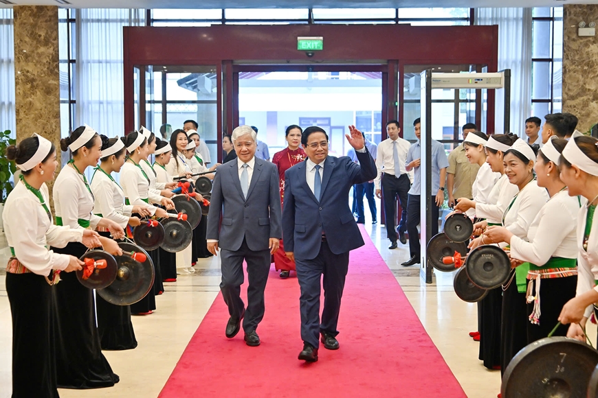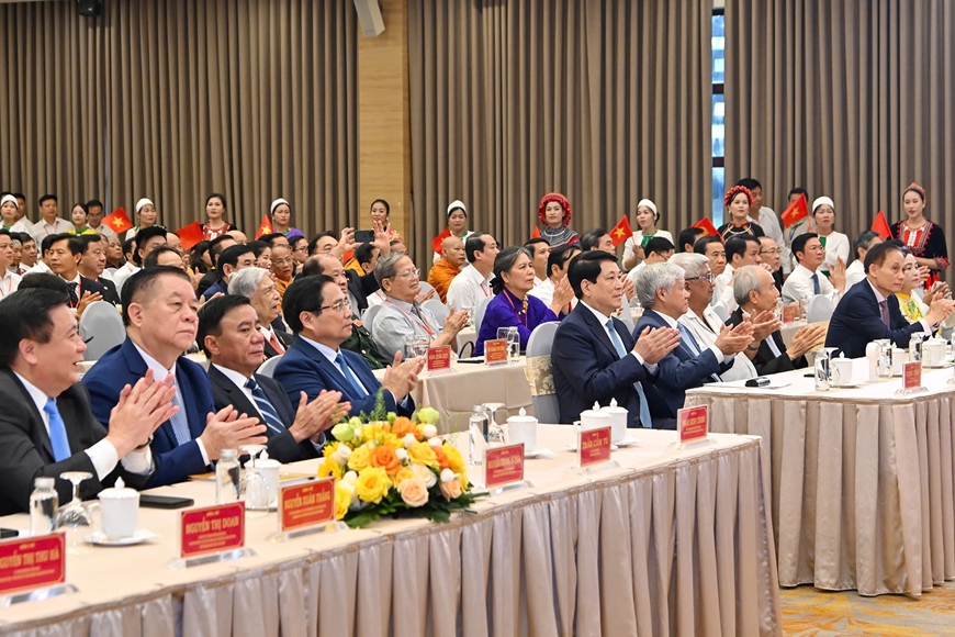 | Chủ tịch nước Lương Cường; Thủ tướng Chính phủ Phạm Minh Chính và các đại biểu tại hội nghị. |