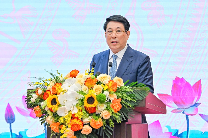 | Chủ tịch nước Lương Cường phát biểu tại hội nghị. |